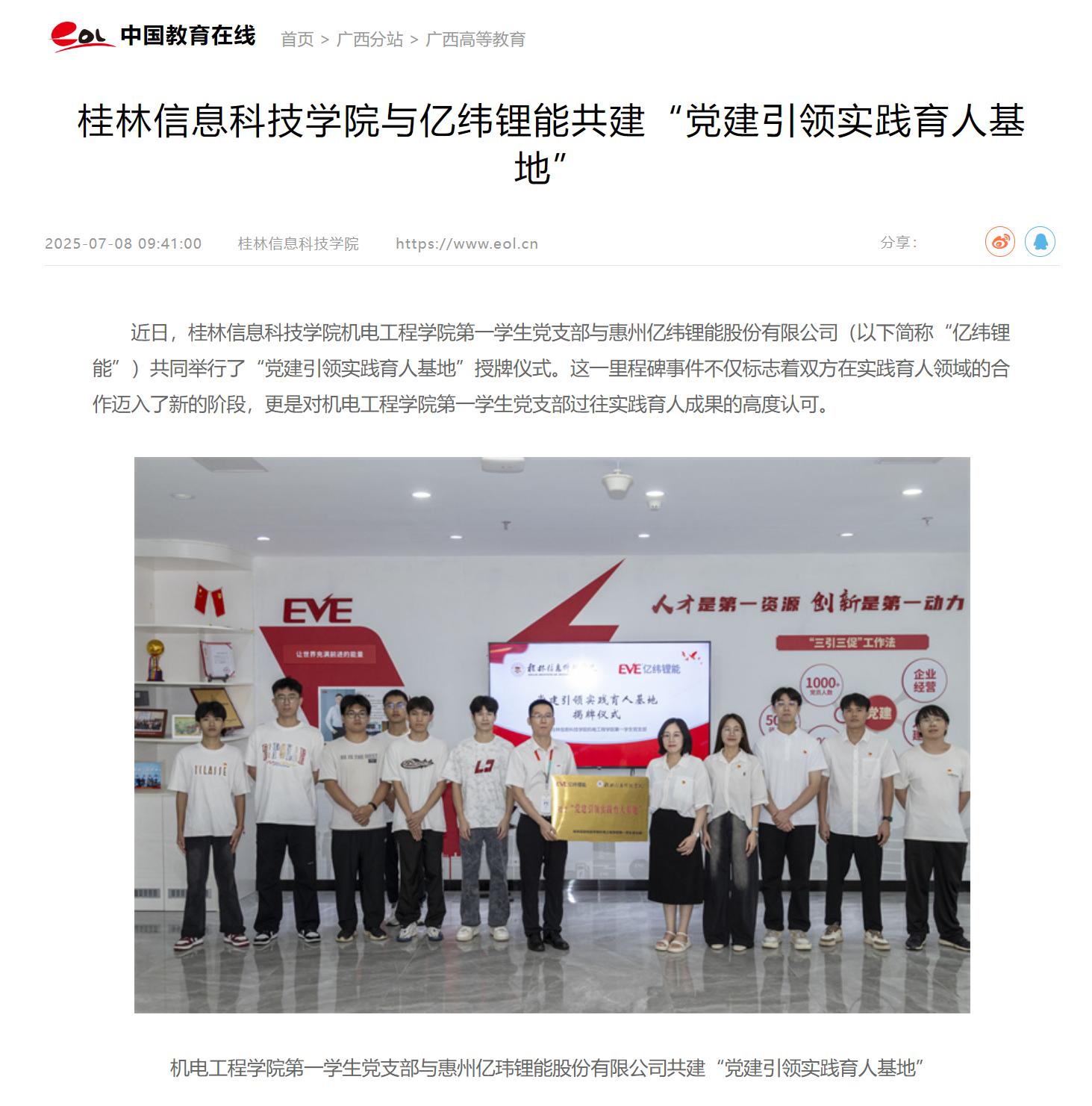 中国教育在线链接:桂林信息科技学院与亿纬锂能共建“党建引领实践育人基地”
