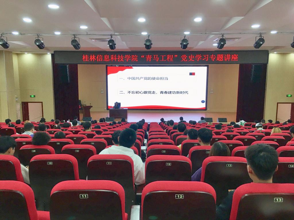 为认真落实《广西共青团“学党史、强信念、跟党走”学习教育实施方案》,教育引导广大团员青年了解党的光辉历史、感悟党的初心使命、领会党的创新理论、体认党的精神谱系、传承党的红色基因,做到学史明理、学史增信、学史崇德、学史力行,11月4日,我校2021年“青马工程”党史学习专题讲座在51206报告厅顺利举办。校级“青马工程”培训班全体学员、二级学院学生骨干等近130人参加学习会。