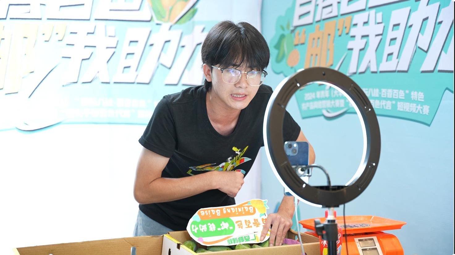 有人嫌弃嘉峪关,有人直闯百色山。学校机电工程学院的学生周大盛积极回到家乡,开启直播助农的实践之旅。暑假期间,他累计直播25场,其中最多的一天直播四场。仅他本人的销售额便达到了6万多元,在 “青耘八桂・百香百色” 特色农产品网络营销大赛中荣获“直播达人金奖”。周大盛同学以自己独特的方式助力百色的农产品走出大山,让更多人领略到百色的“美”为家乡贡献出自己的一份力量。