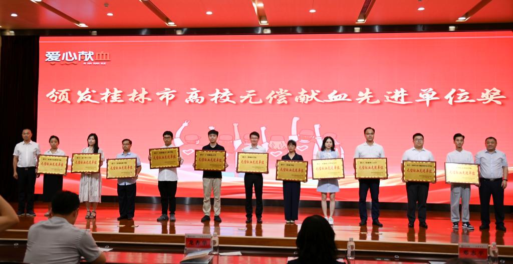 【喜讯】我校荣获2021年度桂林市无偿献血先进单位7月13日,在桂林市2021年度高校无偿献血表彰大会上,桂林市献血委员会授予我校“桂林市无偿献血先进单位”荣誉称号,以表彰我校在无偿献血工作中取得的突出成绩。这已是我校连续第二年获此殊荣。无偿鲜血是一种社...