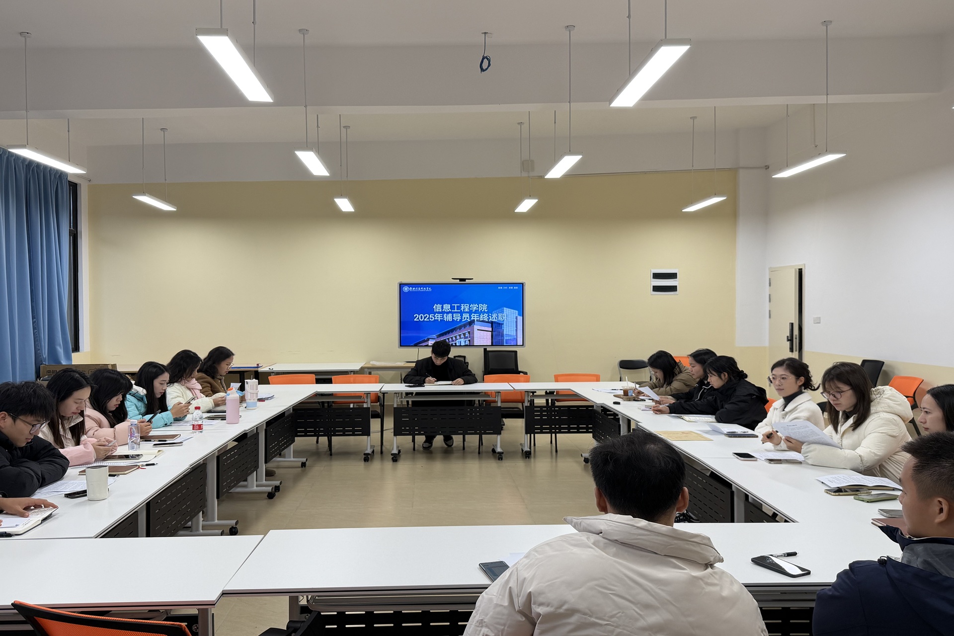 创意设计学院召开2025年度辅导员述职会议为系统总结2025年度学生工作成效,进一步强化辅导员队伍建设,提升学生工作质量,12月31日,创意设计学院于知行楼716教师工作坊召开2025年度辅导员述职会议。学院党总支书记范恒祯主持会议,全体辅导员参会。述...