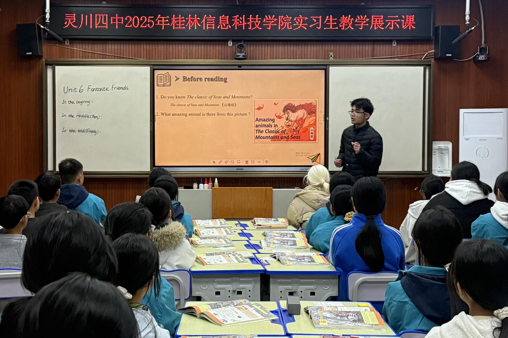 外贸与外语学院2022级英语专业实习生教学展示课获灵川县第四中学好评近日,灵川县第四中学顺利举办我院2022级英语专业实习生成远进的教学展示课。英语教研室副主任谢彩华带领教学实习指导老师桑显洁、蒋沁莼两位老师前往观摩听课,灵川县第四中学教务处主任苏建芳及该校实习指导老...