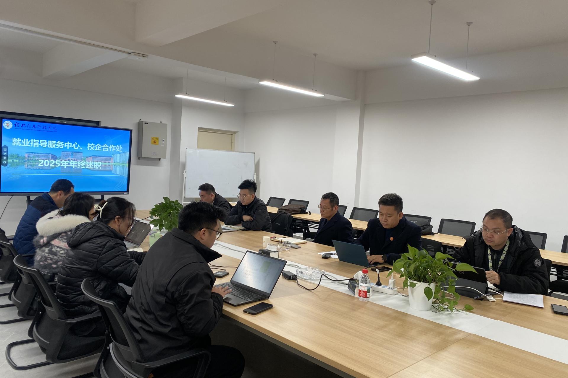 就业指导服务中心、校企合作处联合召开2025年度述职评议会述职明责砺初心 聚力赋能谱新篇。为系统总结年度工作,明确发展方向,凝聚团队合力,12月31日上午,就业指导服务中心、校企合作处在产教融合中心四楼会议室联合召开2025年度工作总结暨个人述职评议会。会议由就...