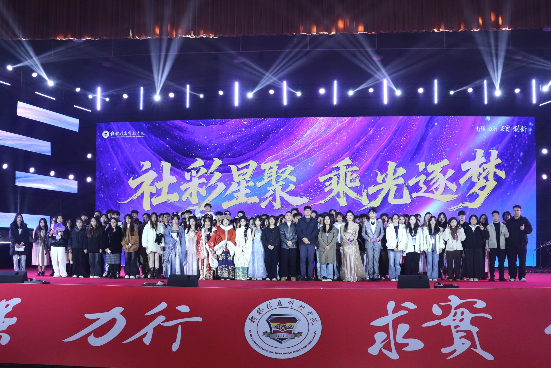 社彩星聚启华章,乘光逐梦展风采——学校第二届社团嘉年华晚会圆满落幕12月21日晚,学校第二届社团嘉年华晚会圆满落幕。本届晚会以“社彩星聚 乘光逐梦”为主题,由校团委主办,汇聚了全校各类学生社团的创意表演,吸引近千名师生共同参与。校团委周阳霖、各学院团委负责同志及其他兄...