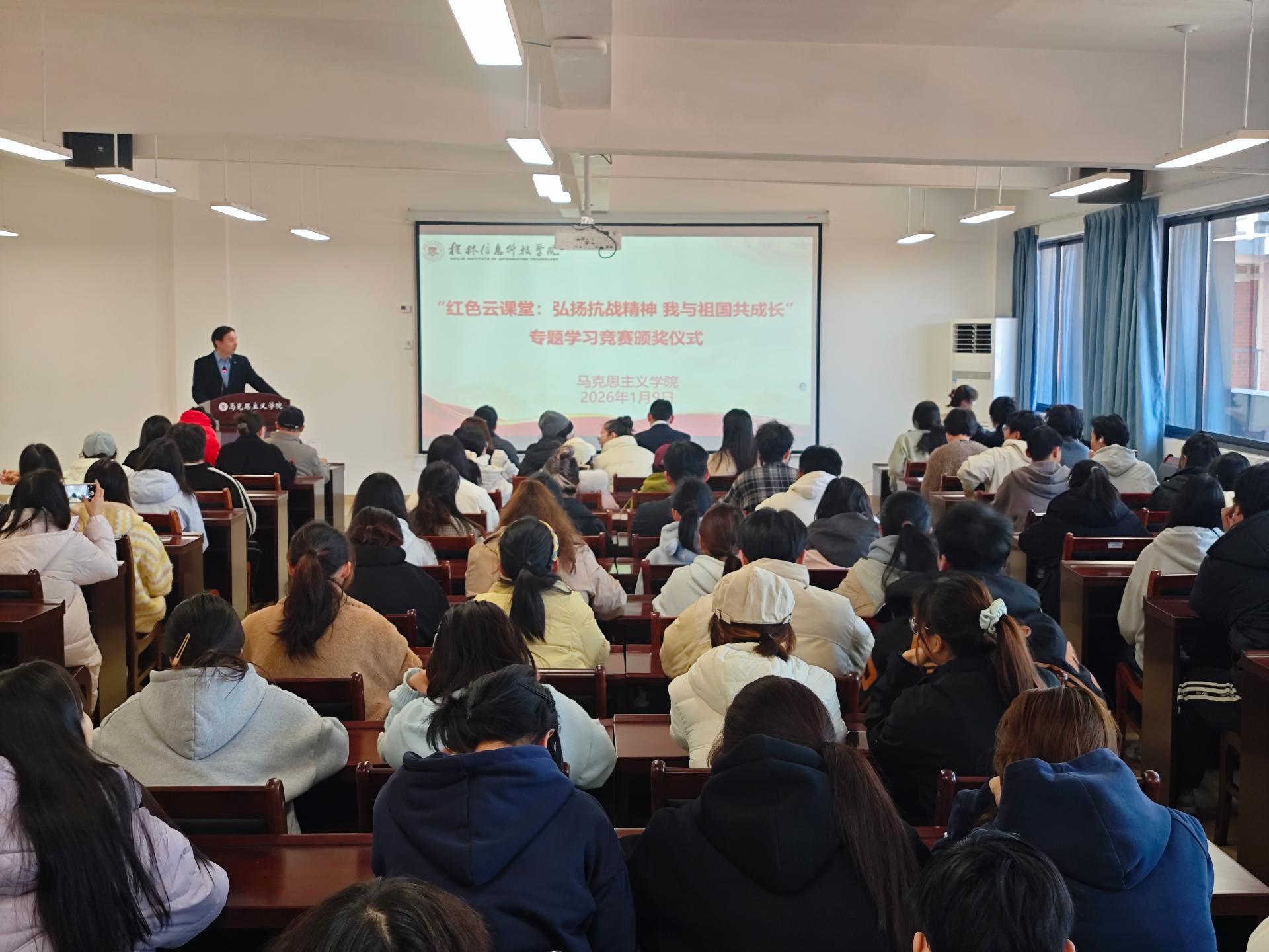 马克思主义学院开展“弘扬抗战精神・我与祖国共成长”专题学习竞赛活动...1月9日下午,马克思主义学院在G605会议室举行“弘扬抗战精神·我与祖国共成长”专题学习竞赛活动总结暨颁奖仪式。本次活动历时一个半月,马克思主义学院党委书记赵奕、院长邱启照、各教研室主任、教师代表及获奖...