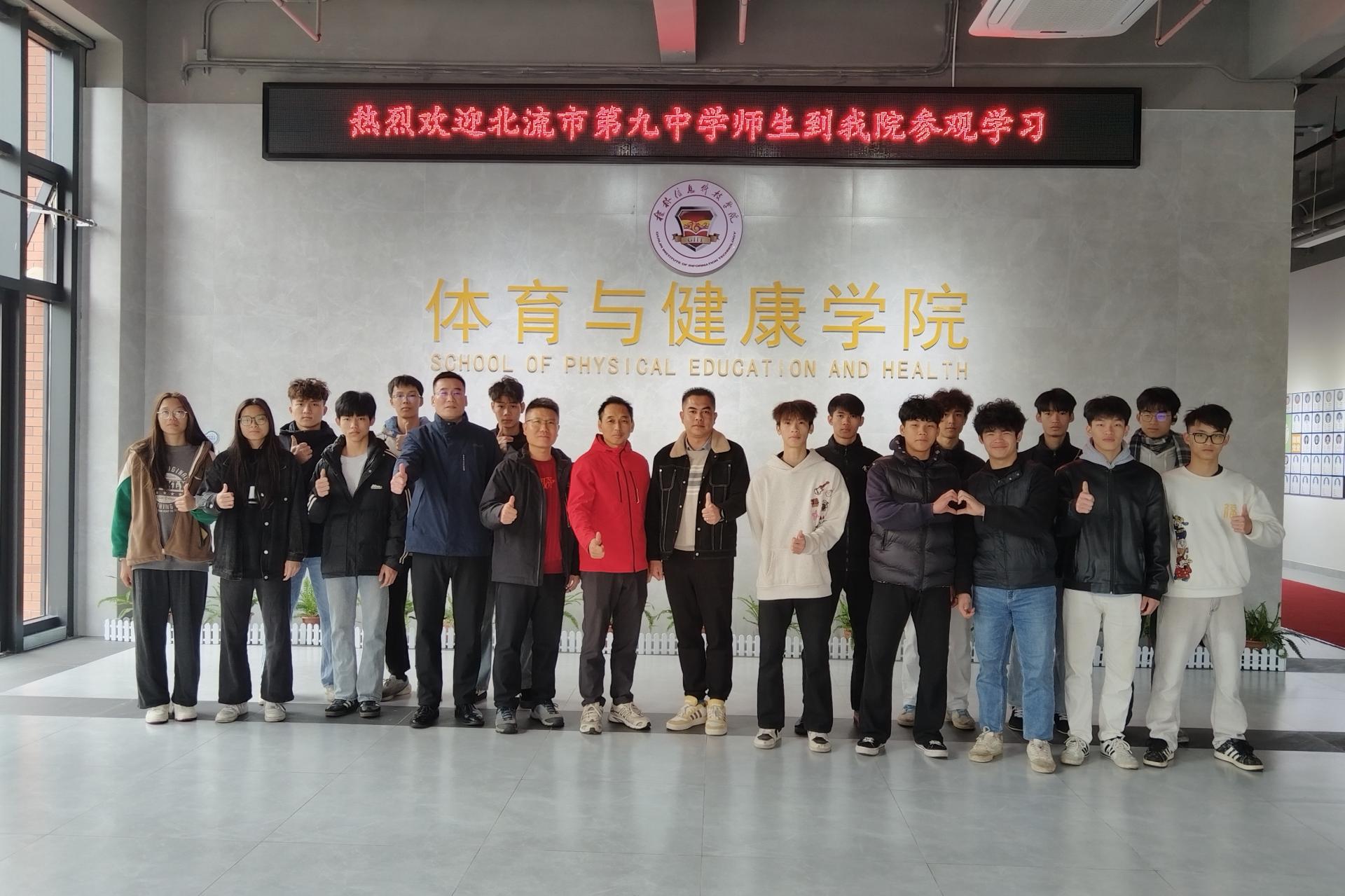 北流市第九中学师生到我校体育与健康学院参观交流为深化大中小学教育衔接,搭建体育素养培育交流平台,帮助中学生近距离感受高校体育专业魅力、明晰体育学习方向,近日,北流市第九中学师生代表一行走进体育与健康学院,开展沉浸式参观交流活动,我校体育与健康...