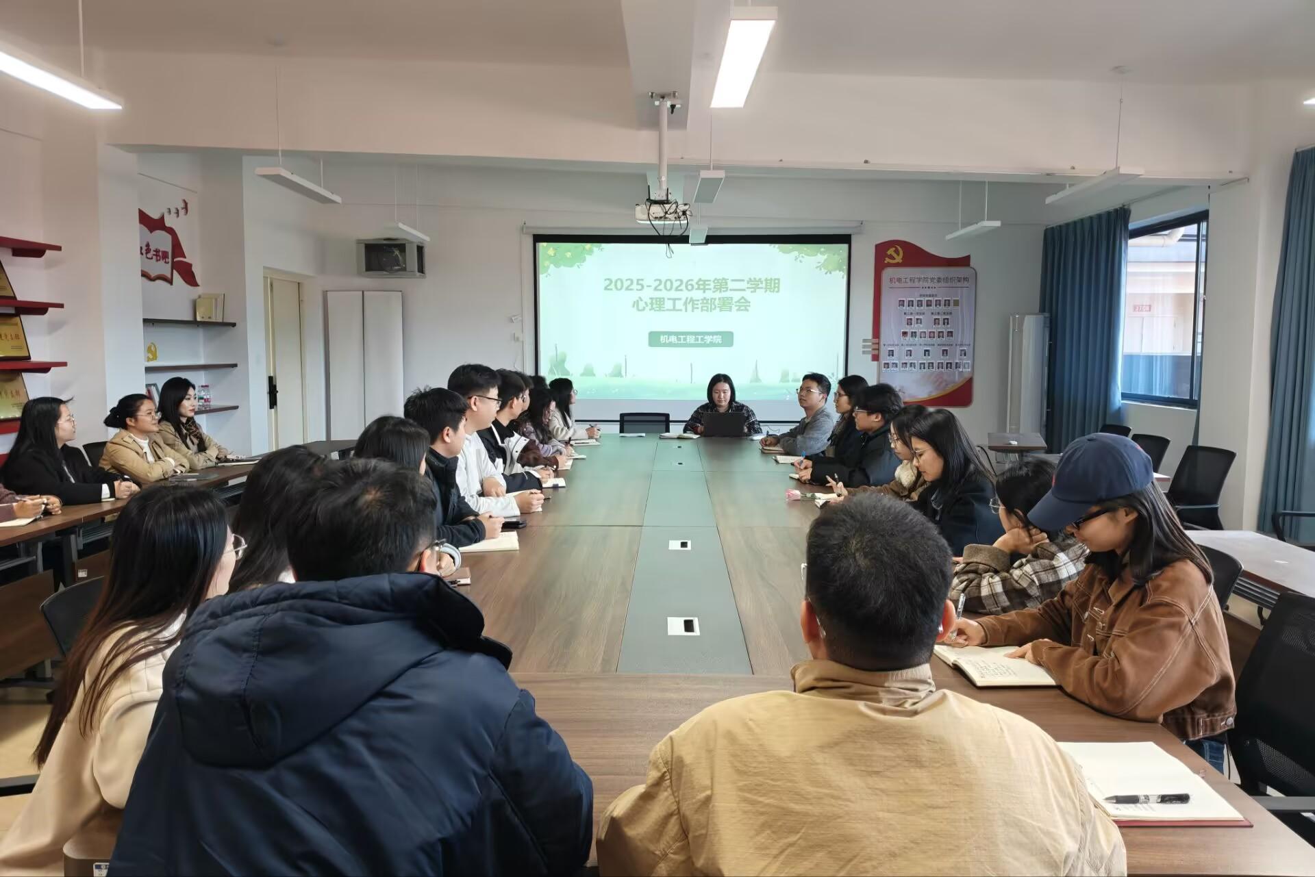 机电工程学院召开2025-2026学年第二学期学生心理工作部署会为进一步夯实学院心理育人工作基础,提升心理健康教育的精准性与实效性,切实筑牢学生心理健康安全防护网,3月6日,机电工程学院在J706会议室召开2025-2026学年第二学期学生心理工作专项部署会。学院党委副书记...