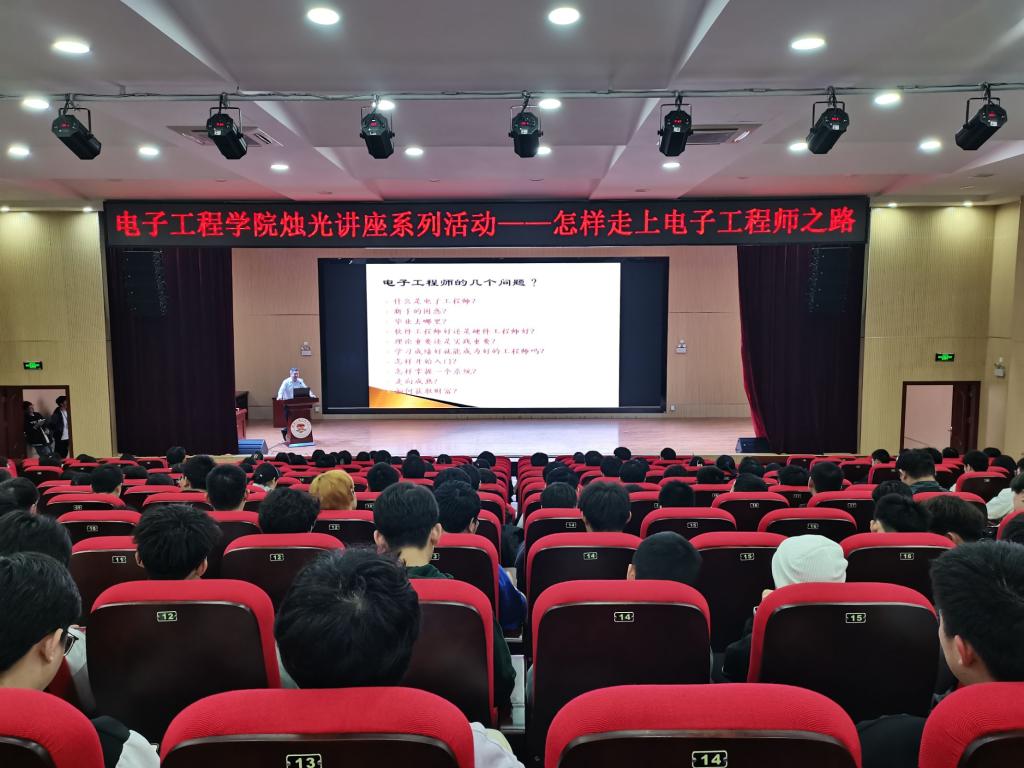 【科技之光】电子工程学院举办“烛光”讲座为营造良好的创新实践学习氛围,3月6日,电子工程学院在51206报告厅举办科技之光系列活动之“烛光”讲座。本次讲座由学院院长韩桂明主讲,2021级、2022级共计260名学生参与。讲座中,韩院长以“如何走上工程师之...