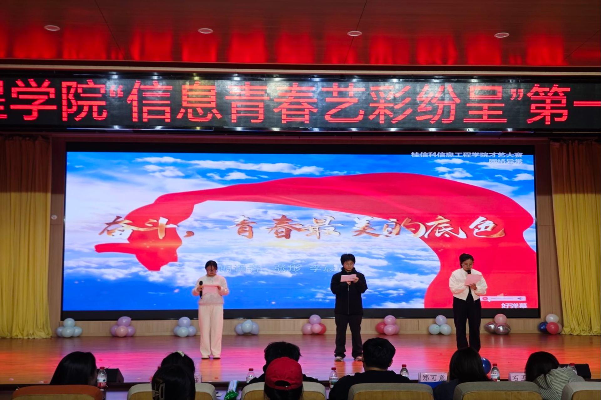 为搭建才艺展示与交流舞台,彰显学子的艺术风采与青春活力。11月18日,信息工程学院第一届才艺大赛决赛于F107报告厅圆满落幕。本次决赛以“信息青春,艺彩纷呈”为主题,特邀学院党委书记郭健、学院团委副书记薛航、张传俊、李胜男及各年级辅导员组成评审团,三百余名师生齐聚现场,共同见证这场精彩纷呈的才艺盛宴。