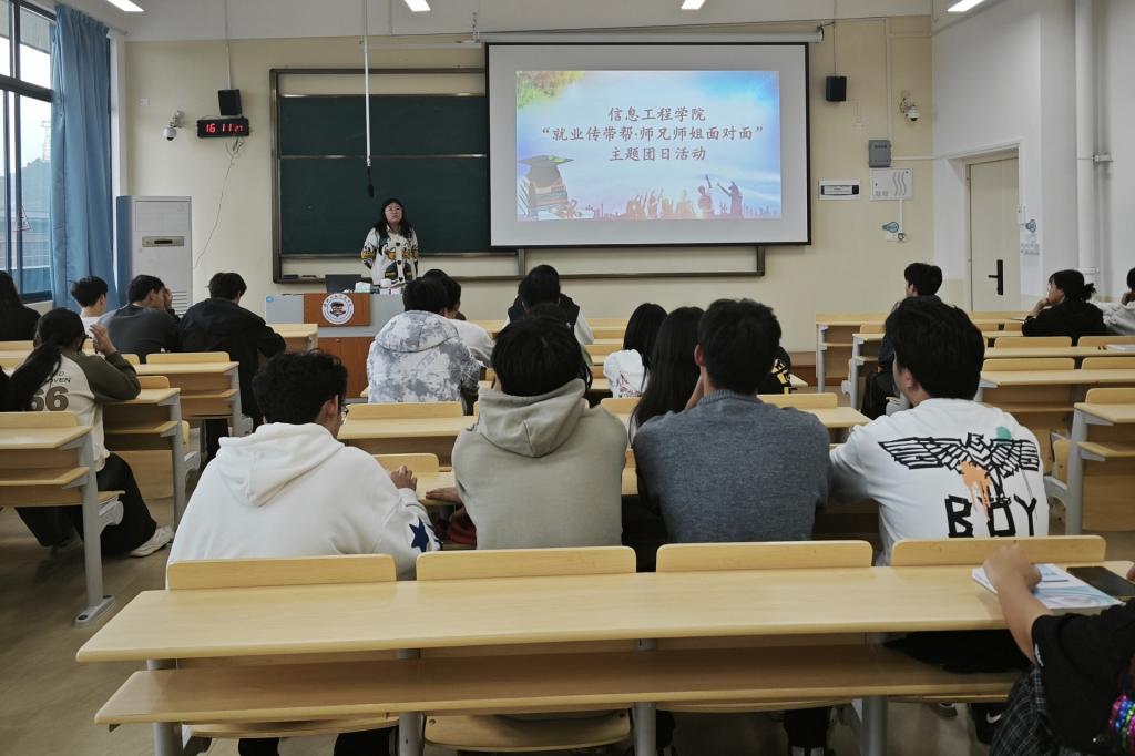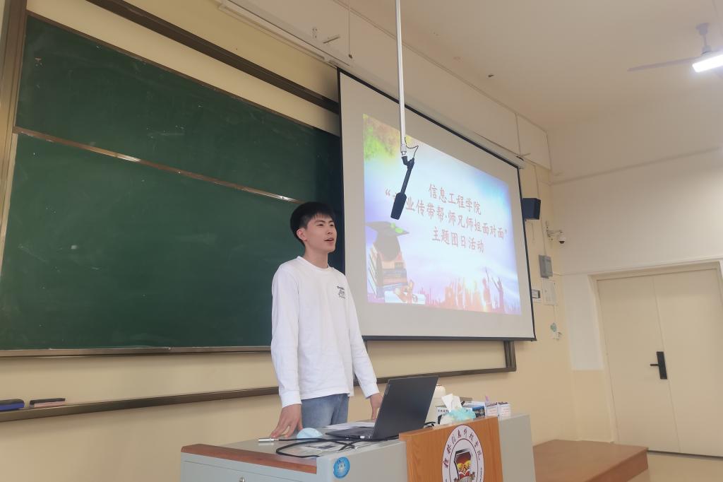 11月23日,信息工程学院在C508教室举办了“就业传帮带,师兄师姐面对面”团日活动。本次活动邀请了我院21届毕业生俞梵涛担任主讲人,分享自己的大学经历和就业心得。
