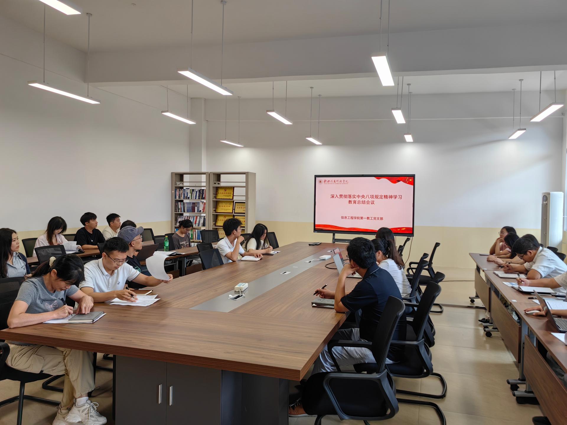 为全面深入贯彻中央八项规定精神学习教育工作成效,巩固拓展成果、推动作风建设常态化长效化。近日,信息工程学院党委组织深入贯彻中央八项规定精神学习教育总结会,总结会通过党委理论学习中心组会议与各党支部会议相结合的形式分层开展,确保学习教育精神传导至每一位党员。