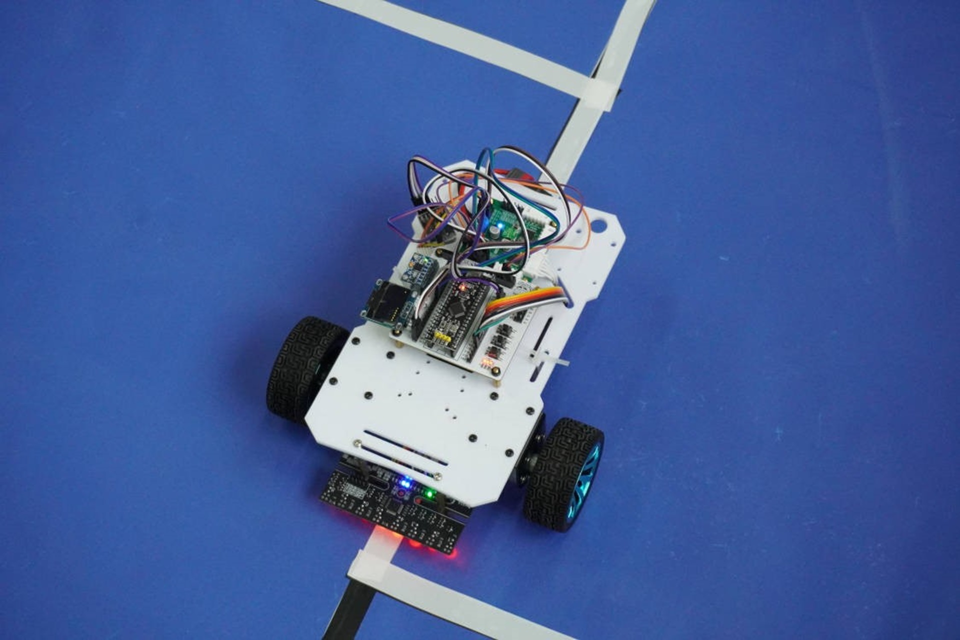 本次比赛设有急速赛车、电磁寻迹、迷途光影三个赛道。赛前,参赛选手们早早来到现场,对自己的智能小车进行最后的调试。赛中,现场气氛紧张而热烈,观众们屏息凝神,注视着每一辆智能小车的表现。选手们在操控小车的过程中,展现出了极高的技术水平和科技意识,他们熟练地运用编程和传感器技术,让小车在赛道上飞驰、追踪电磁信号、穿越障碍,充分展示了自己的制作技巧和车辆性能。最后,由评委们评选本次比赛的获奖名单。