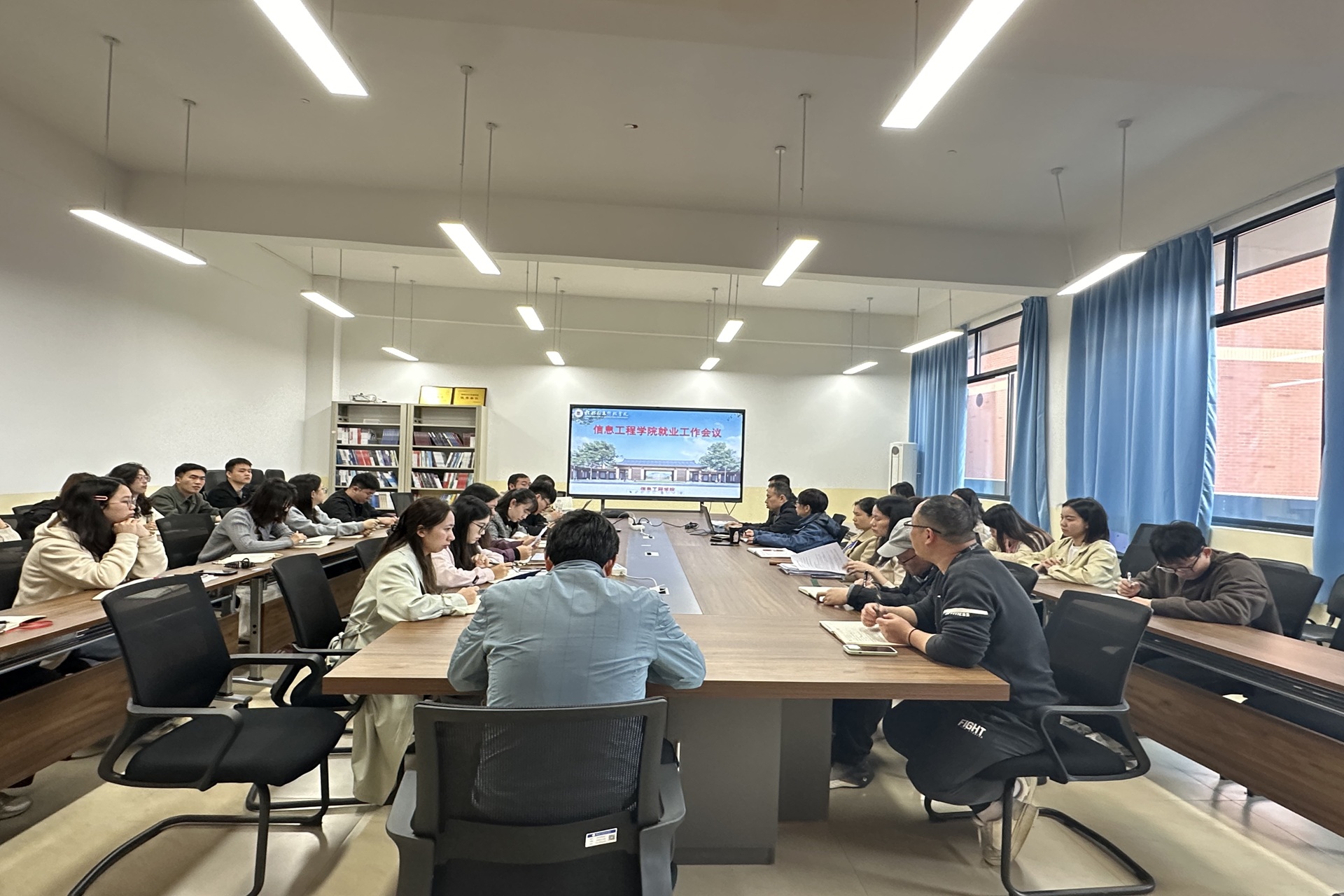 为深入贯彻党中央、国务院关于高校毕业生就业工作的决策部署,扎实推进学校2025届毕业生就业工作推进会精神落地见效,4月7日,信息工程学院于B513-2召开2025届毕业生就业工作专题会议,全面部署毕业季就业攻坚行动。学院院长黄建灯、党委书记郭健携全体领导班子成员、各教研室主任及全体辅导员参会,共同研判就业形势,细化帮扶举措。