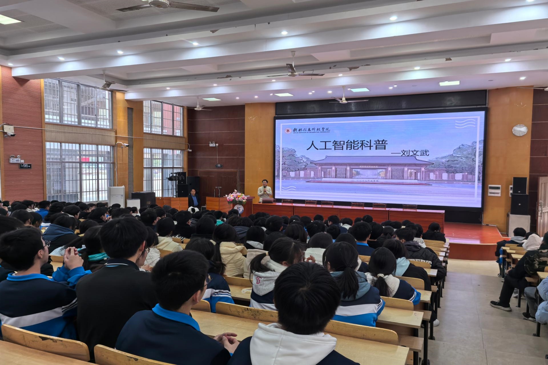 我校人工智能教研室的专任教师刘文武担任主讲嘉宾,他围绕《人工智能科普》这一主题,详细阐述了人工智能的发展历程,并展示了各个发展阶段中的标志性成就。通过丰富的图片和视频资料,刘老师生动地介绍了人工智能在全球范围内的主要应用领域以及当前市场上的前沿产品,使在场的同学们对人工智能的实际应用有了更加深入的了解。