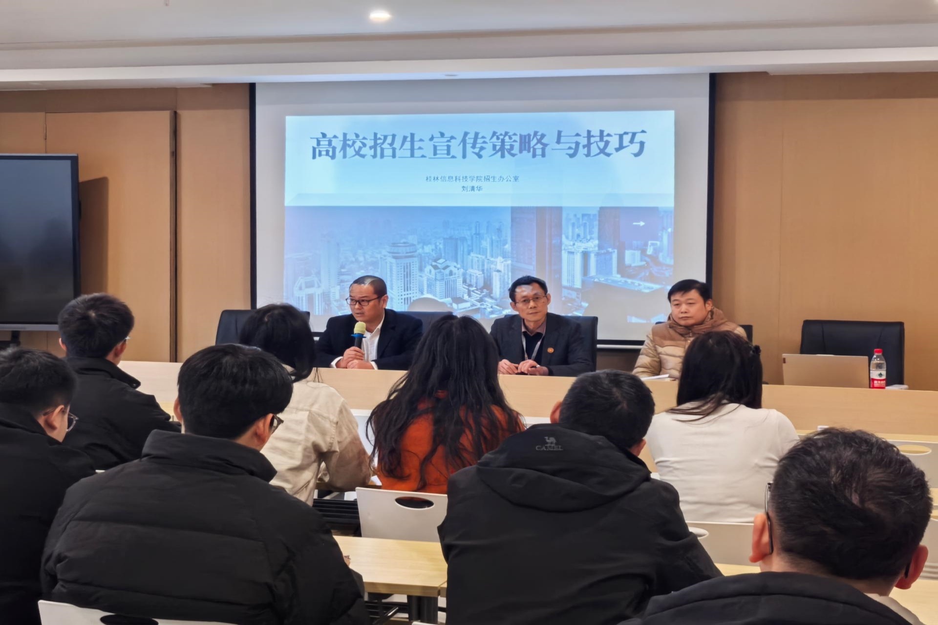 外宣工作专班负责人刘清华围绕“高校招生宣传策略与技巧”进行了专题培训,从高校招生形势、新高考改革背景下的政策解读以及宣传策略技巧等多个维度讲解了如何构建有吸引力的招生品牌形象。并分享自己的实战经验,包括如何与当地中学、高职高专院校建立紧密合作关系,获取生源信息;如何针对不同的专业,突出学校个性化培养模式。