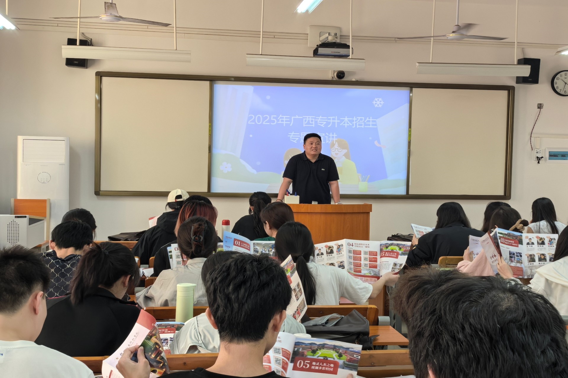 在专升本政策宣讲会上,我校宣传团队从招生计划、报考条件、专业备考、志愿填报等方面进行详细解读,并结合我校专升本高职高专大类对口专业为学生提供报考建议。宣讲团队还通过案例分析、互动问答等形式,针对学生关心的就业前景、奖助学金政策、课程设置、企业实践等问题进行逐一解答,帮助学生明晰升学规划。现场学生反响热烈,纷纷表示对专升本考试充满信心。