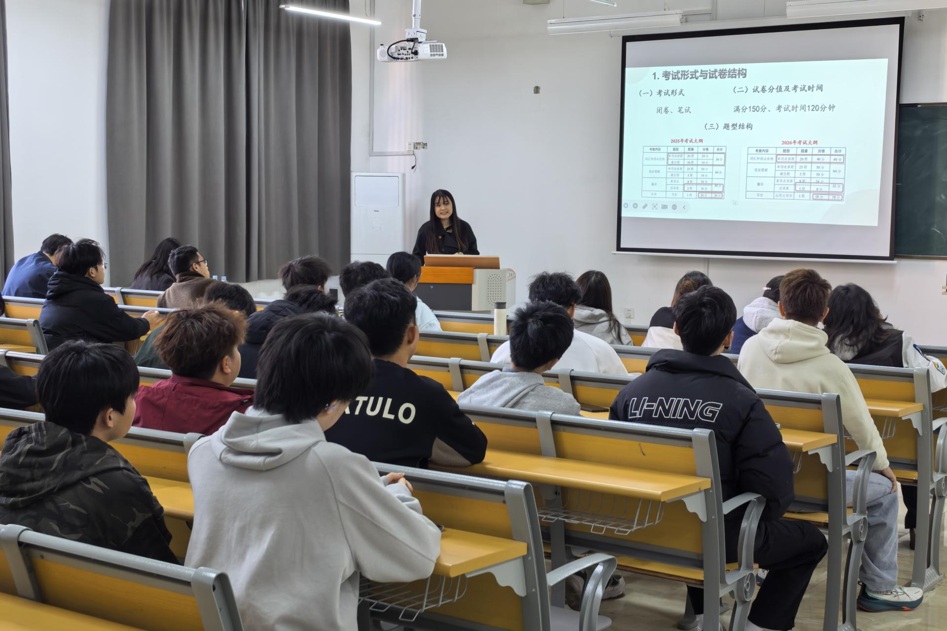 为切实助力桂林信息工程职业学院2023级有专升本意向的学子明晰考试形势、筑牢知识根基、科学规划备考路径,12月17日下午,我校主动发挥教学资源优势,委派工科数学教研室主任廖秀、英语(对外汉语)教研室专任教师覃耀葵专程赴桂林信息工程职业学院开展专升本考试高数与英语辅导专题讲座。此次讲座共40余名学生报名参加,现场学习交流氛围热烈浓厚。